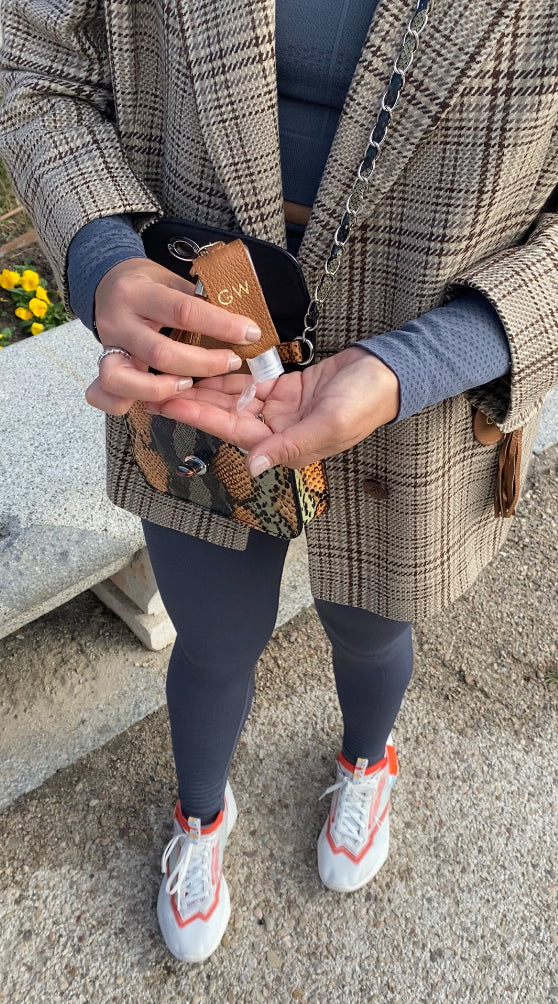 ✔︎ Fundas crema 100% cuero vacuno fabricado en España. Envuelve un bote vacío recargable. Ideal para llevar colgado del bolso para siempre tenerlo a mano.